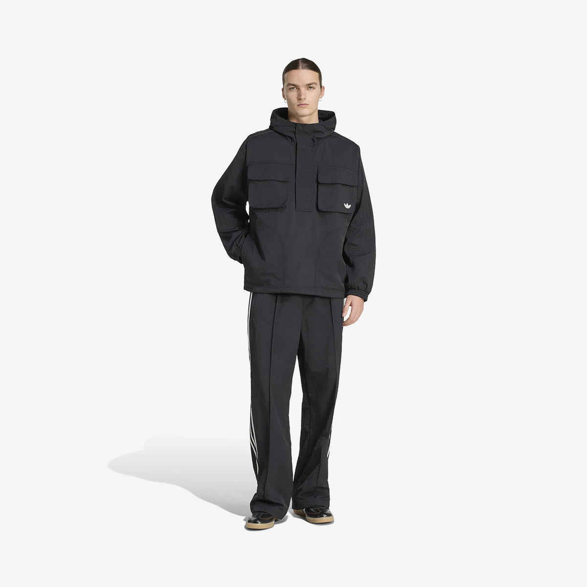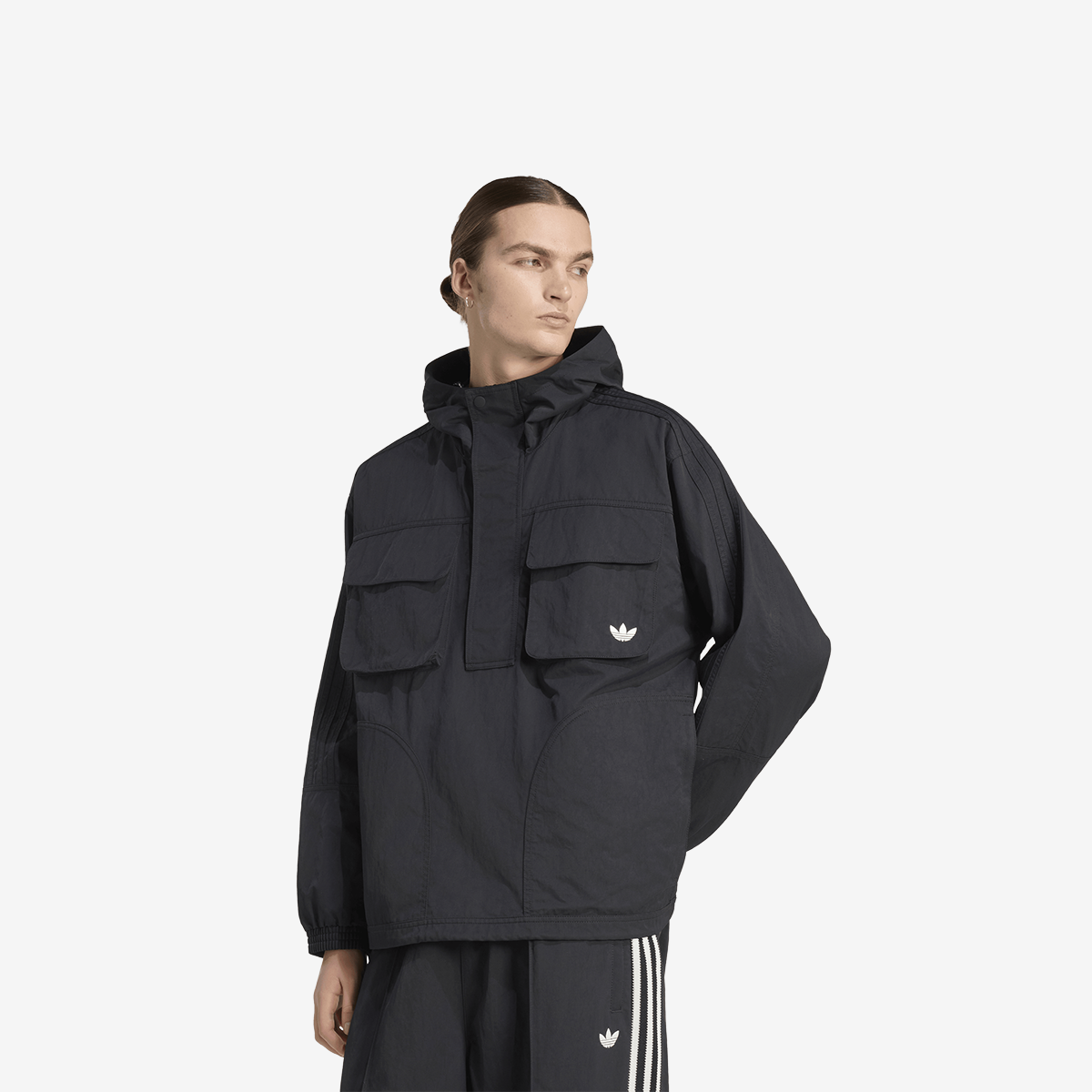 Diseñada para aquellos que aprecian una combinación de influencias deportivas clásicas con la ropa casual moderna. El corte holgado de esta chaqueta permite llevarla a capas de forma relajada, lo que la hace adecuada para las aventuras cotidianas. Su estructura con capucha ceñida aumenta la sensación de comodidad, mientras que el icónico logotipo del trébol le confiere un atractivo atemporal.