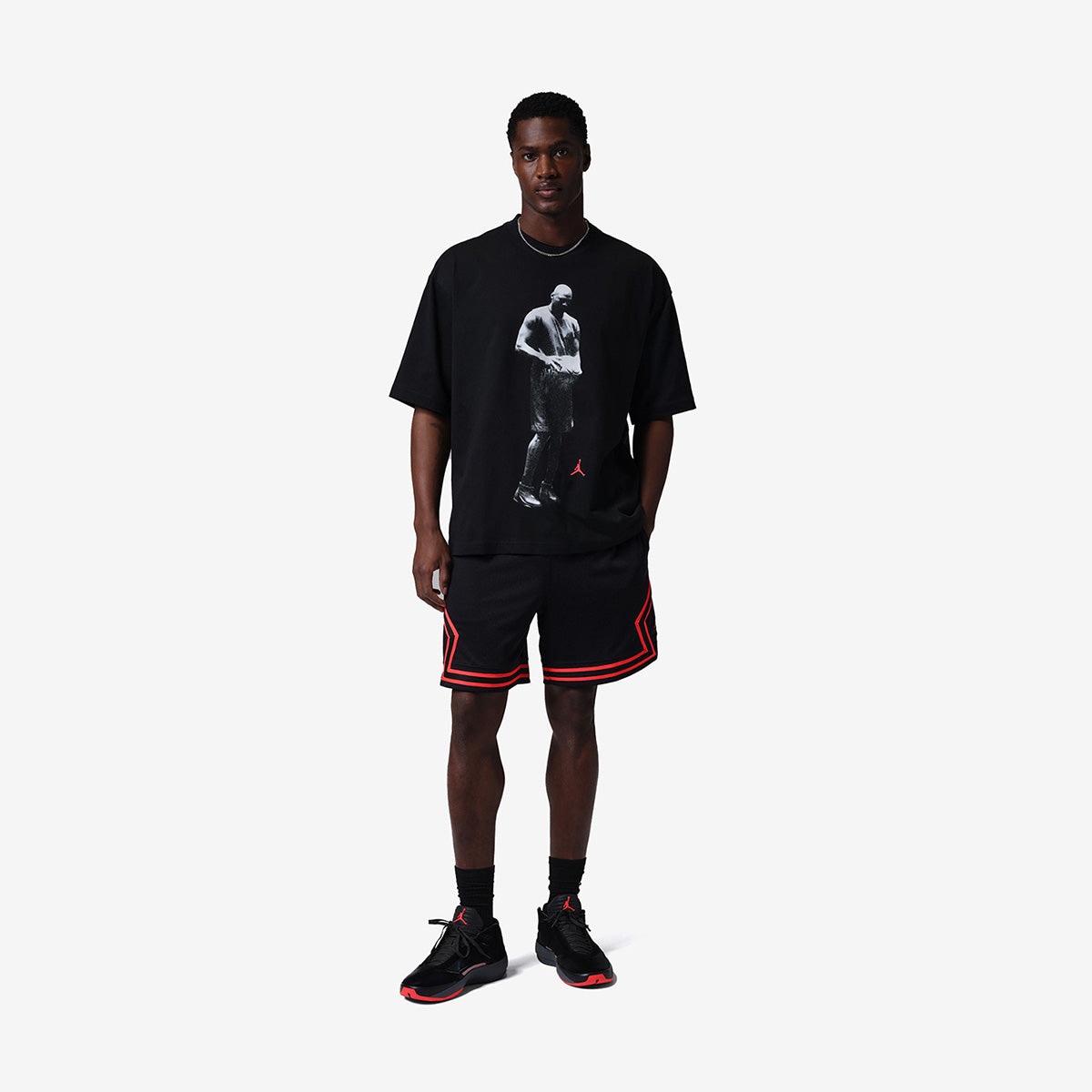 Incorporamos tecnología absorbente de sudor a esta playera de algodón de densidad media para ofrecer una sensación fresca y cómoda durante todo el día. El tejido equilibra estructura y suavidad, acompañando el movimiento con naturalidad. Y el gráfico, inconfundible, retoma un clásico del universo de Jordan Brand: un símbolo atemporal que trasciende generaciones y reafirma actitud.