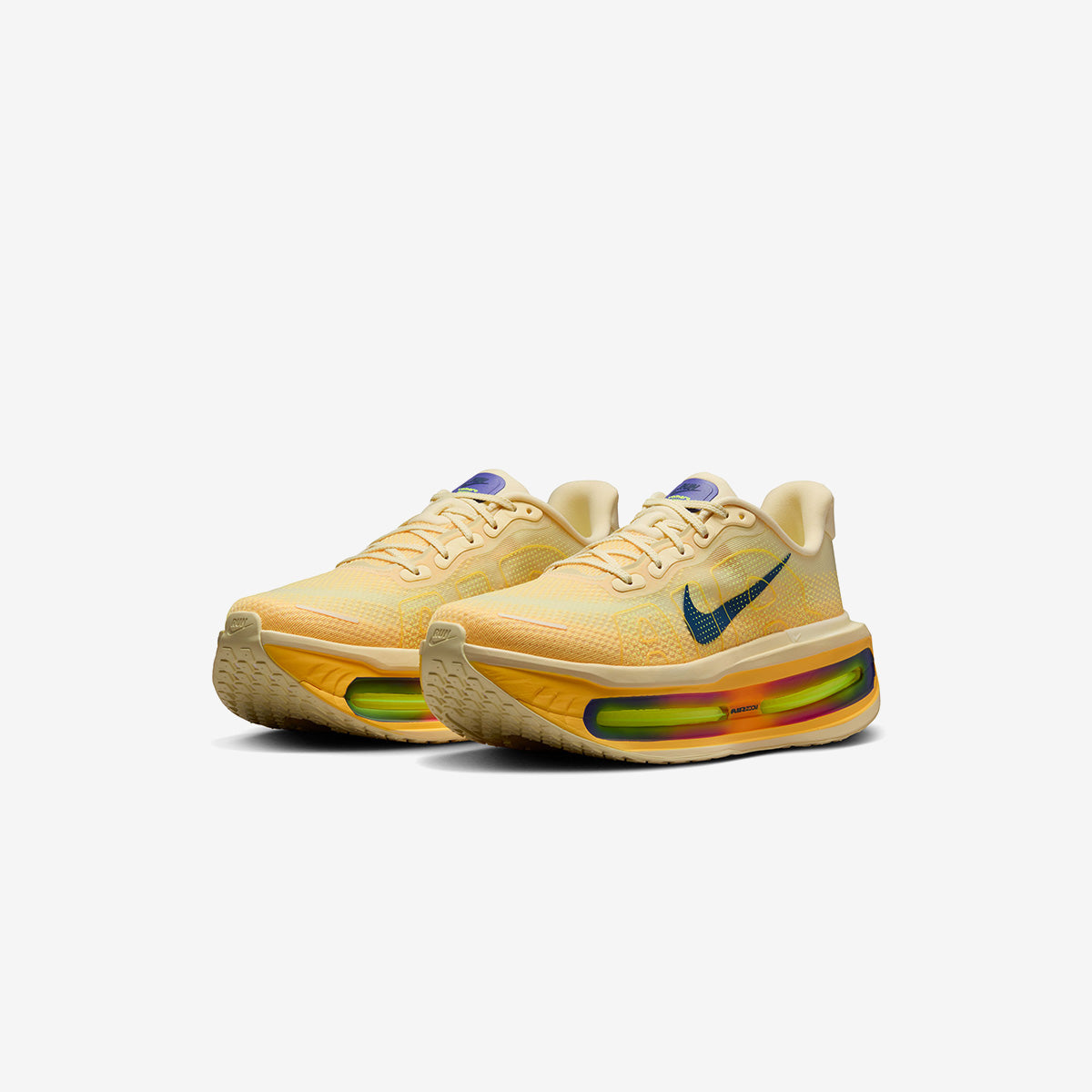 El Vomero Premium "Alabaster" presenta la distintiva combinación de colores "Citron Pulse", creando una presencia notable con su combinación equilibrada de energía vibrante y facilidad de uso diario. Un diseño en capas forma la base, mientras que el destacado degradado multicolor de la entresuela pasa a través de tonos vacíos de alabastro, pulso de cidra, hipervioleta y azul, enmarcando el brillante sistema de amortiguación Zoom Air inspirado en voltios.